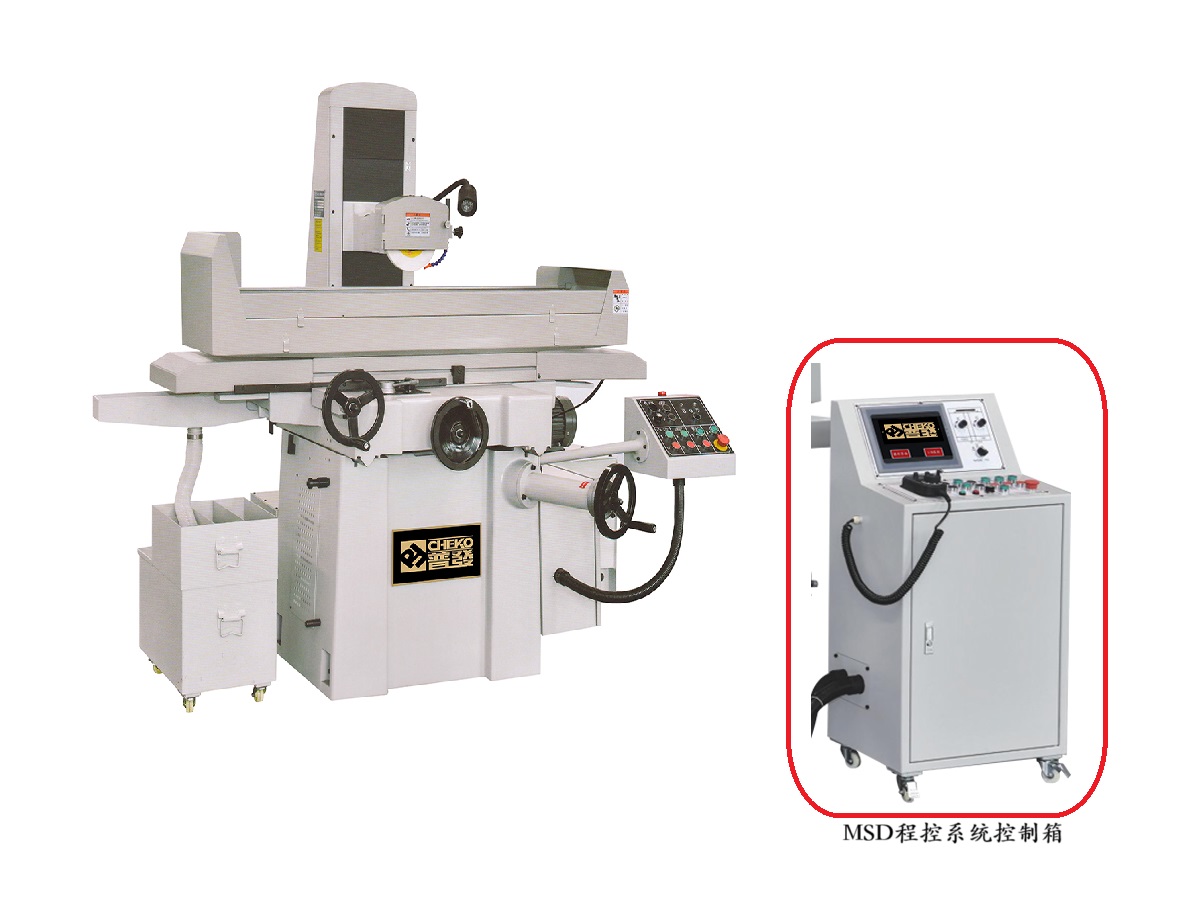 PFG-2550MSD程控精密平面磨床機床名稱:三軸自動精密平面磨床(單軸程式控制)機床型號:PFG-2550MSD工作臺面尺寸(長寬):500mm250mm工作性能:前後、左右及上下三軸全自動操作,上下採用日本三菱PLC程式控制系統及AC伺服馬達控制,客制人機觸控介面,操作簡單、方便、易懂。具有半自動平面磨削/全自動平面磨削/單溝槽自動磨削功能。機床用途本機床在繼承傳統平面磨床基礎上採用框架結構